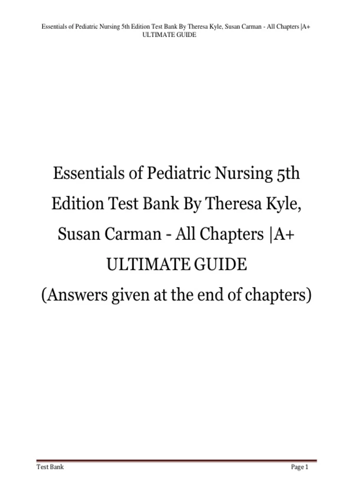 , Essentials of Pediatric Nursing 5th Edition Test Bank By Theresa Kyle, Susan Carman - All Chapters |A+