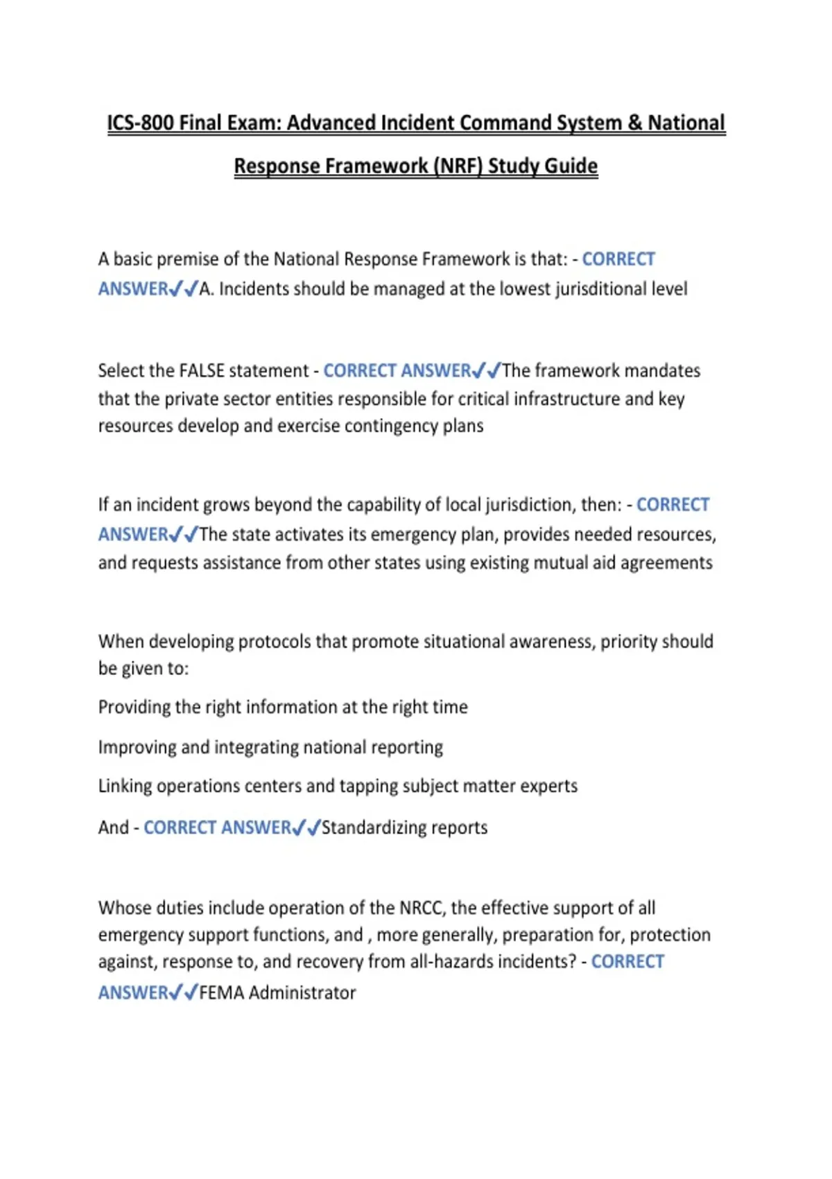 Response Framework (NRF) Study Guide