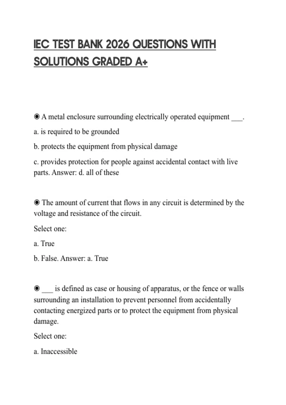 IEC TEST BANK 2026 QUESTIONS WITH SOLUTIONS GRADED A+