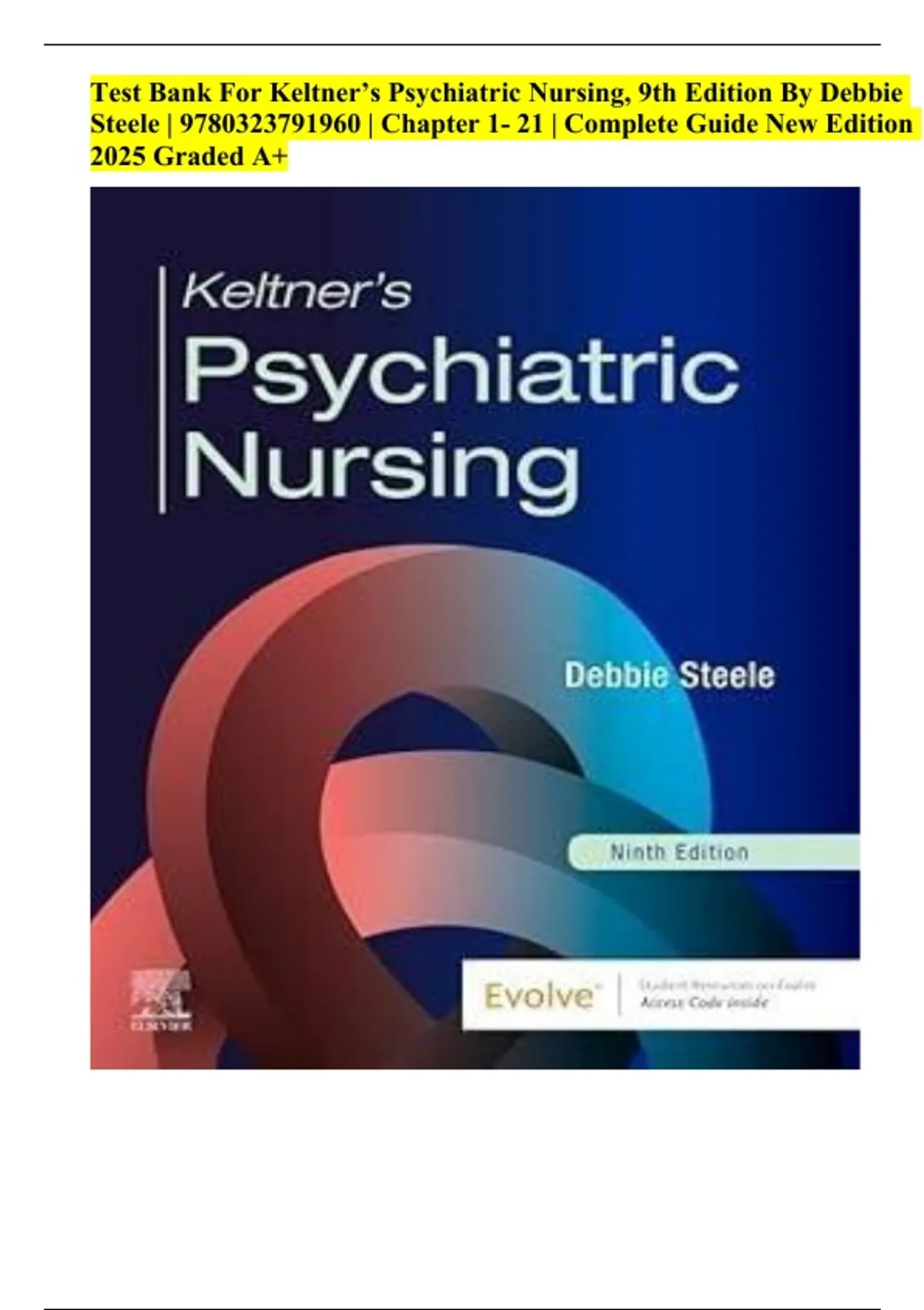 Test Bank for Psychiatric Nursing by Keltner & Steele, 9th Edition | All Chapters Included (Ch. 1-36) | Graded A+