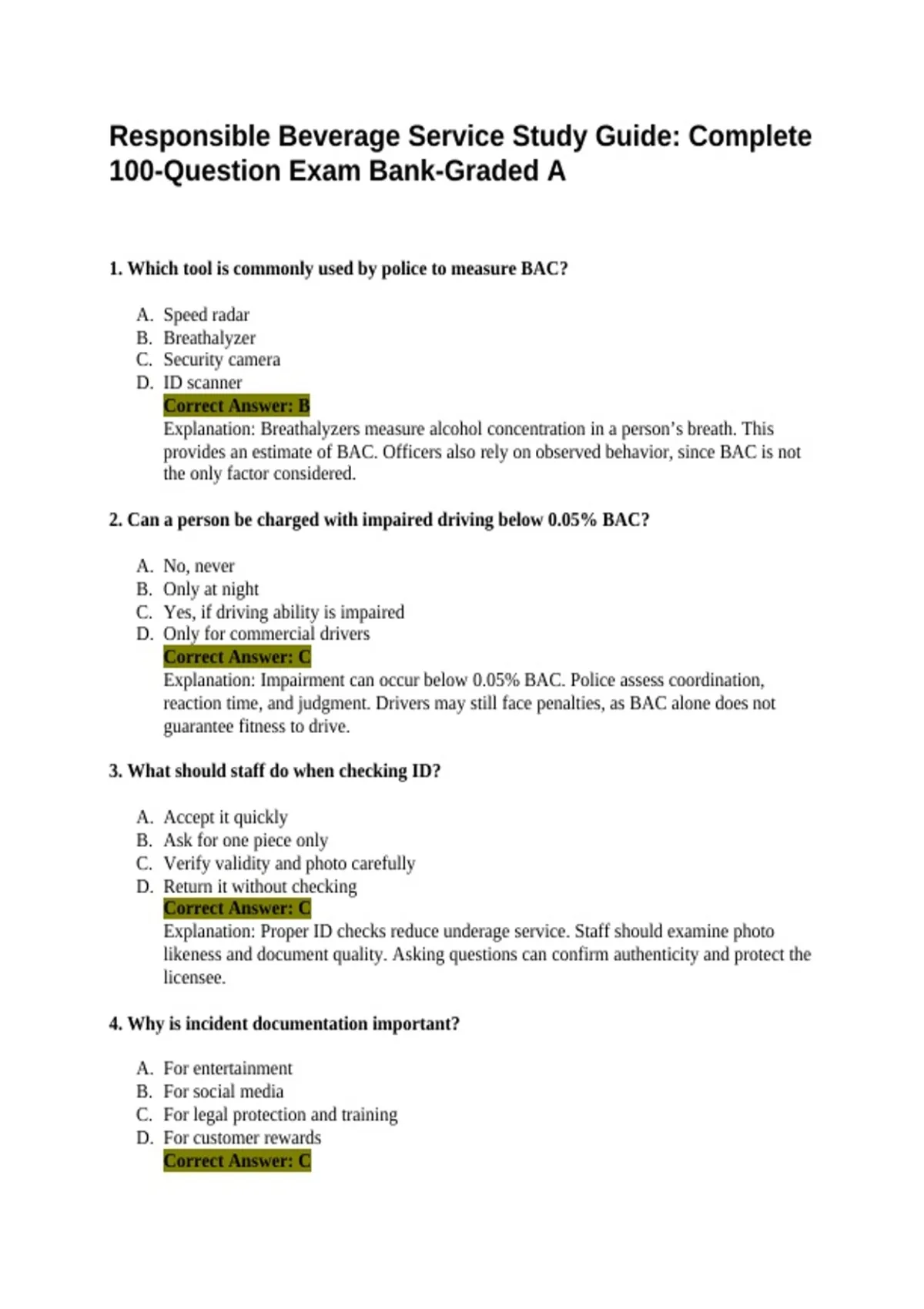 Responsible Beverage Service Study Guide: Complete