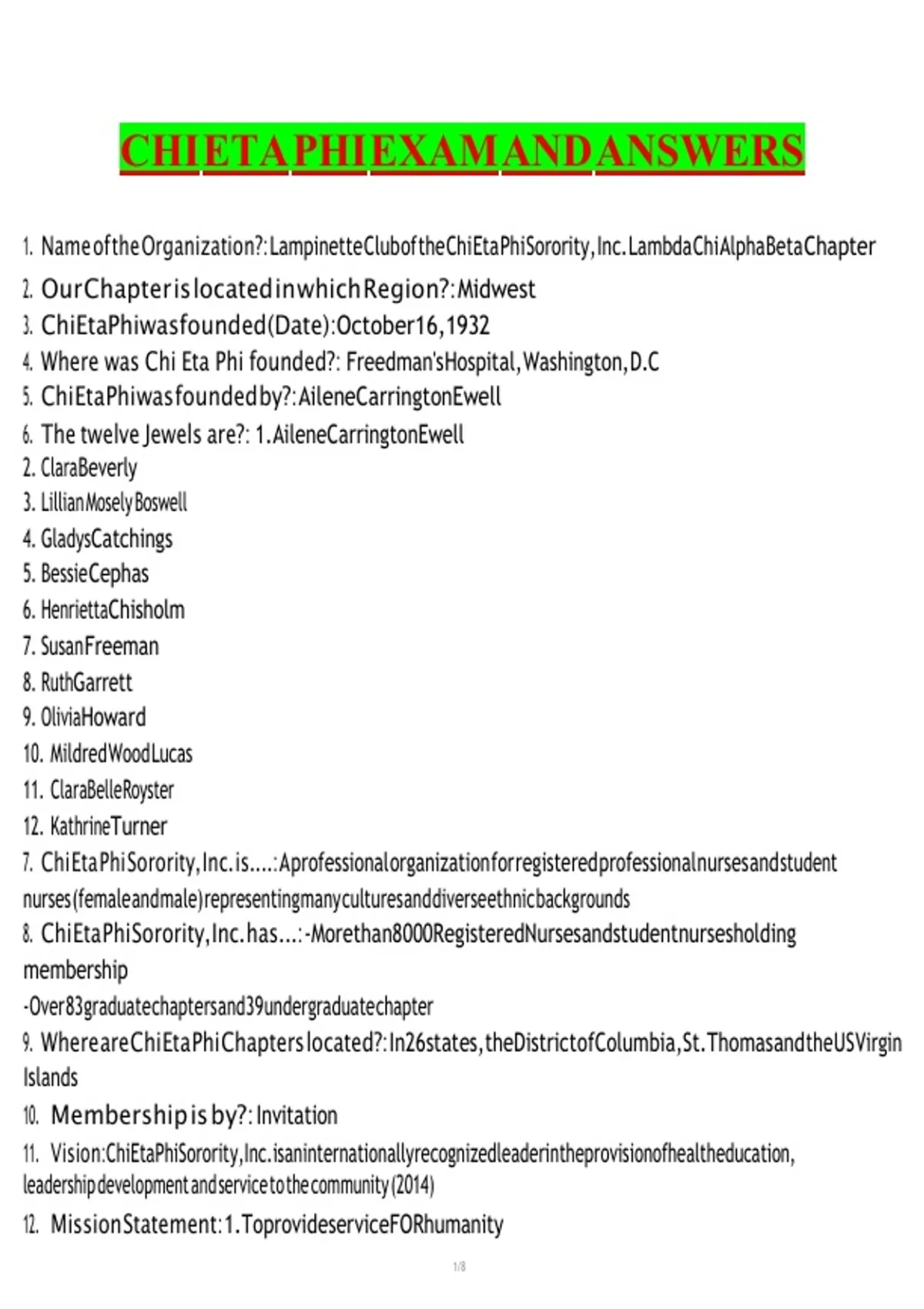 8. Chi Eta Phi Sorority, Inc. has...: -Morethan8000RegisteredNursesandstudentnursesholding