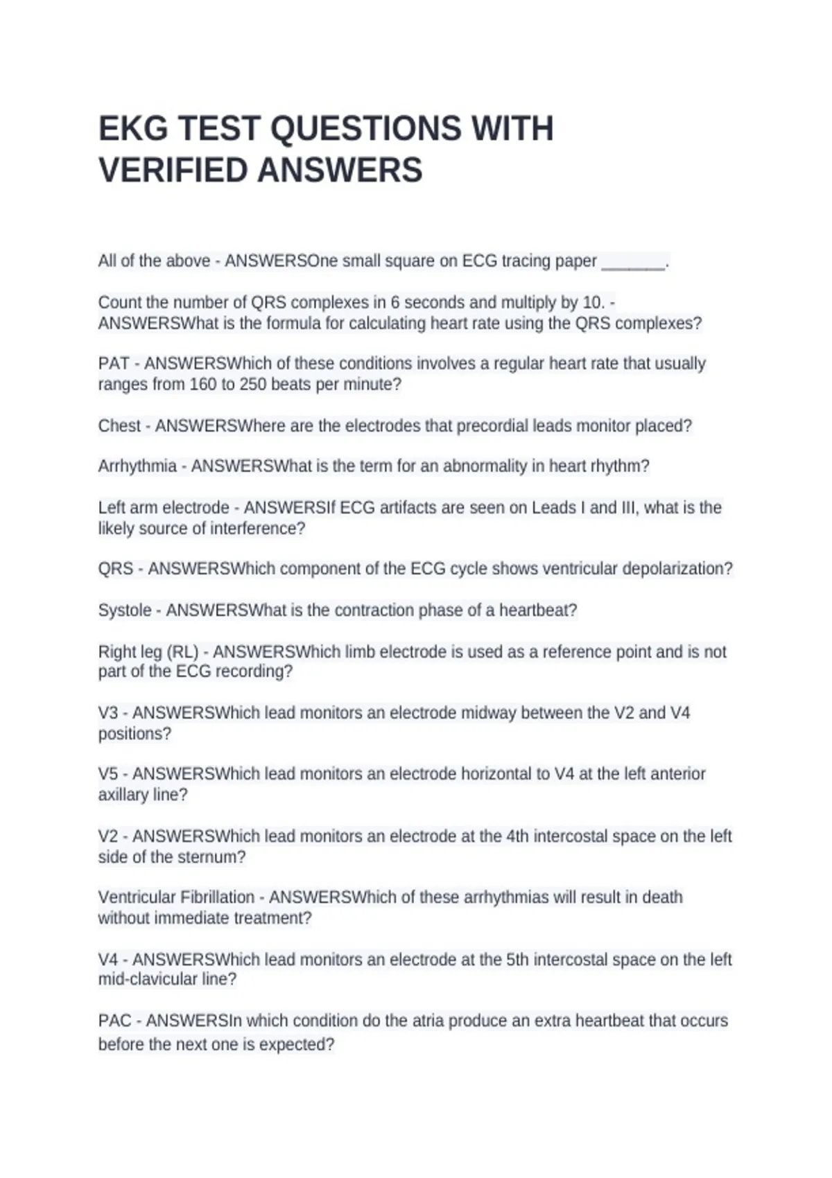 EKG TEST QUESTIONS WITH VERIFIED ANSWERS