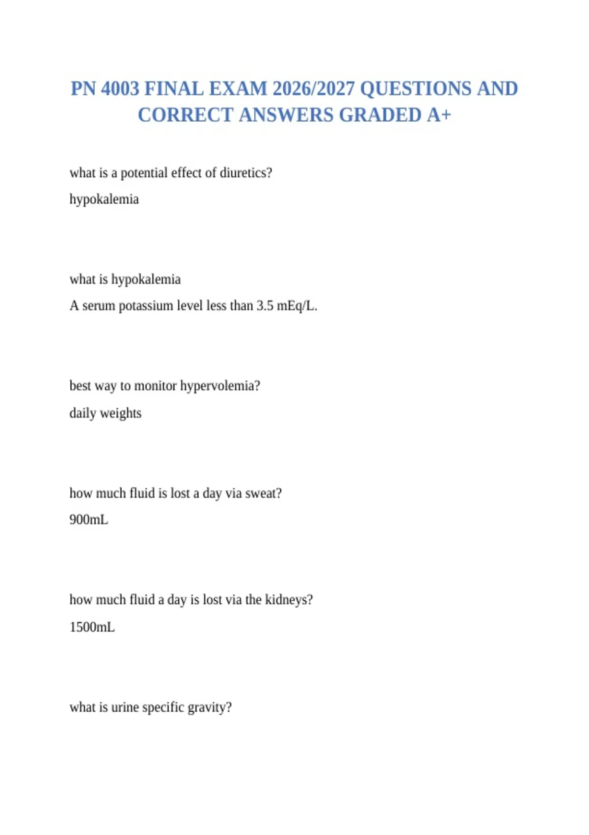PN 4003 FINAL EXAM 2026/2027 QUESTIONS AND CORRECT ANSWERS GRADED A+