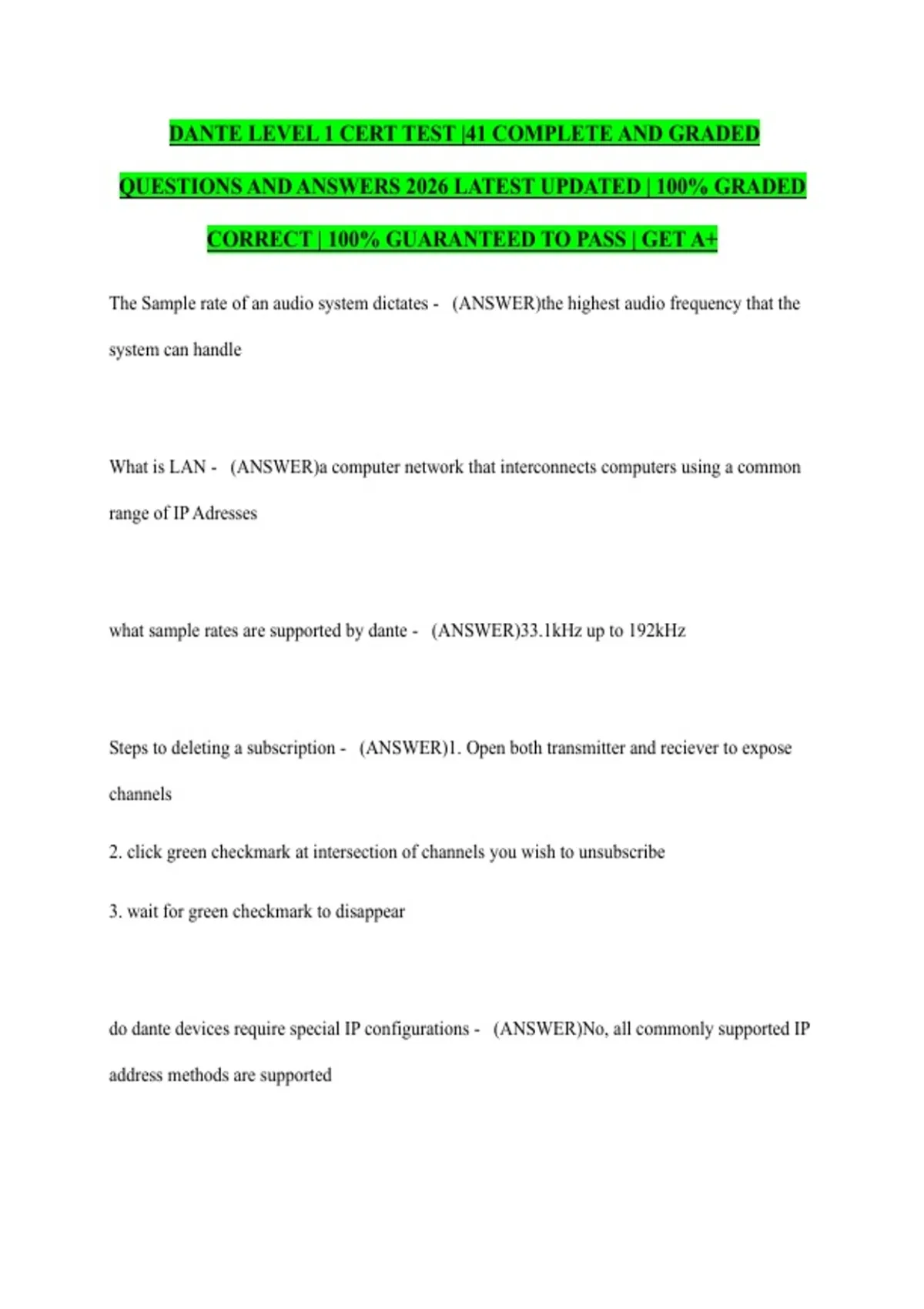 CORRECT | 100% GUARANTEED TO PASS | GET A+