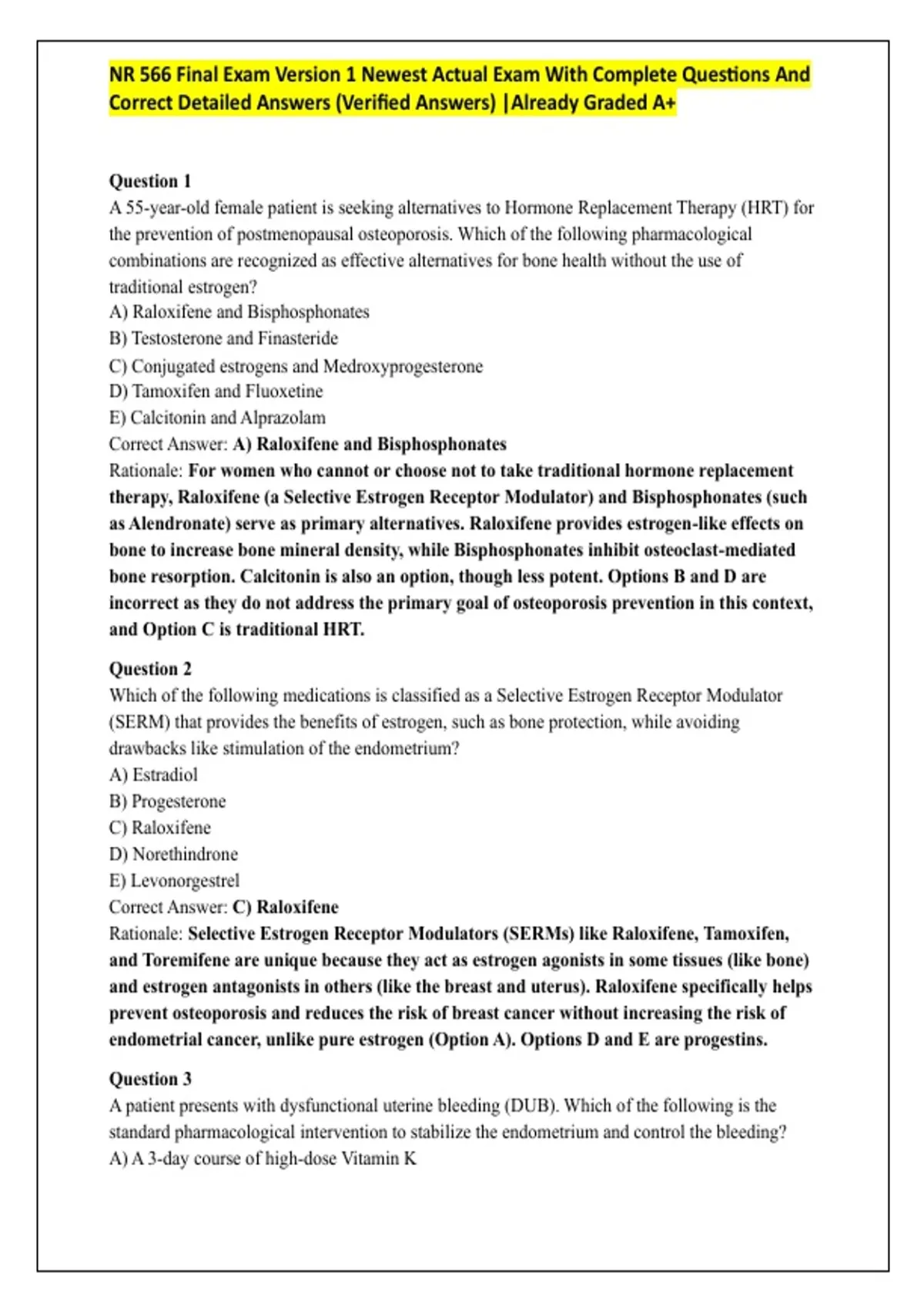 NR 566 Final Exam Version 1 Newest Actual Exam With Complete Questions And