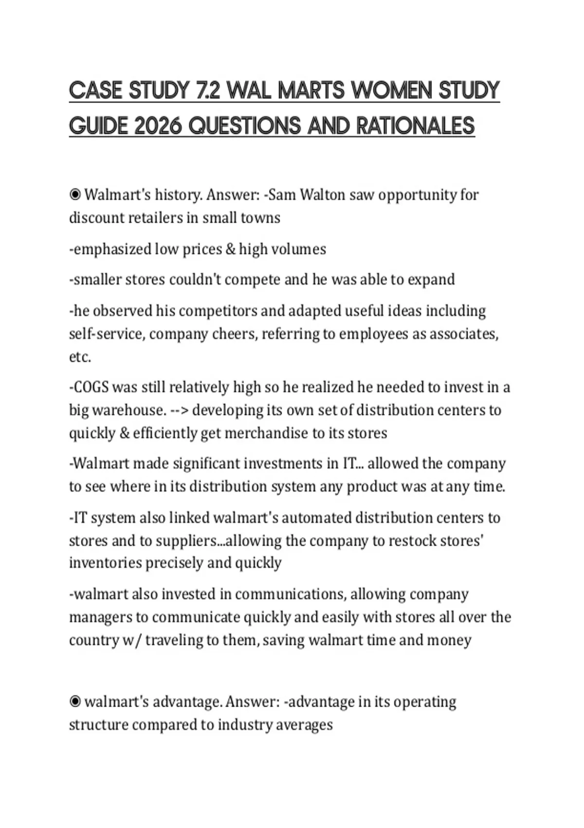 CASE STUDY 7.2 WAL MARTS WOMEN STUDY GUIDE 2026 QUESTIONS AND RATIONALES