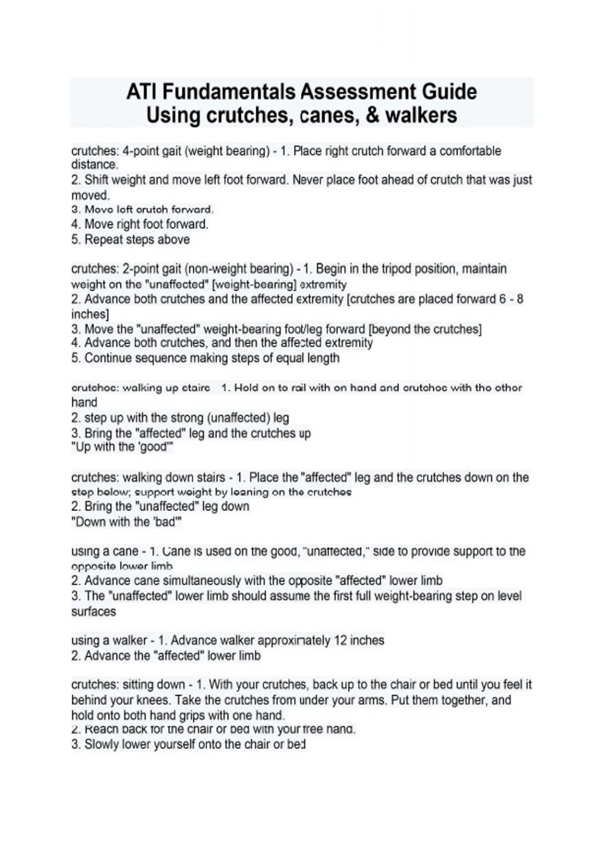 ATI Fundamentals Assessment Guide Using crutches, canes, & walkers