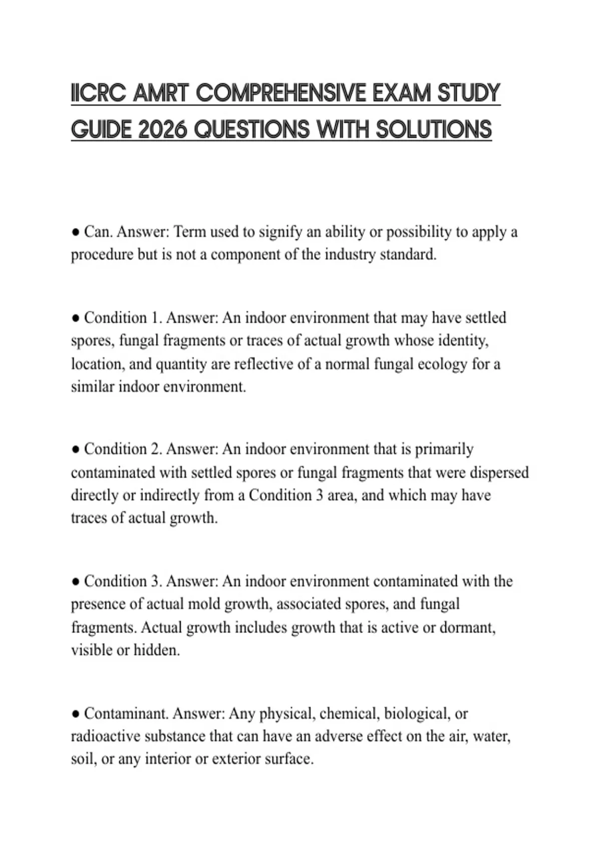 IICRC AMRT COMPREHENSIVE EXAM STUDY GUIDE 2026 QUESTIONS WITH SOLUTIONS