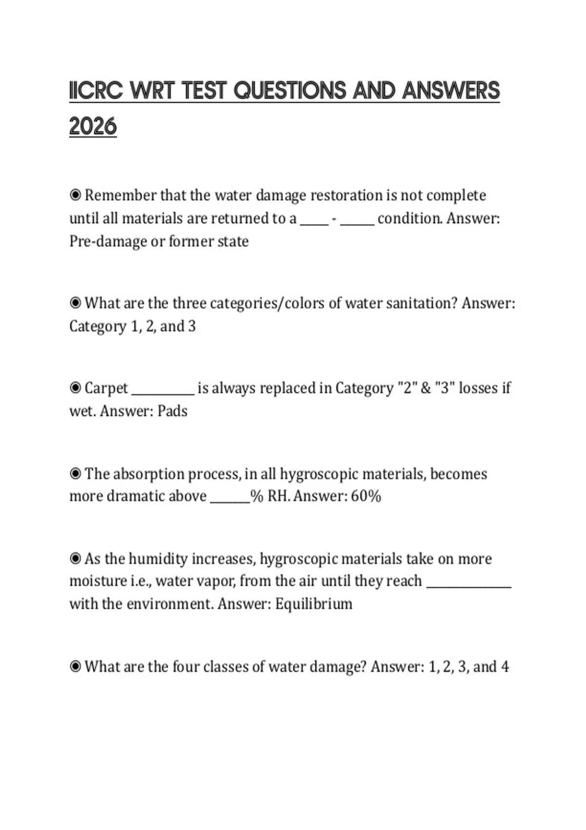 IICRC WRT TEST QUESTIONS AND ANSWERS