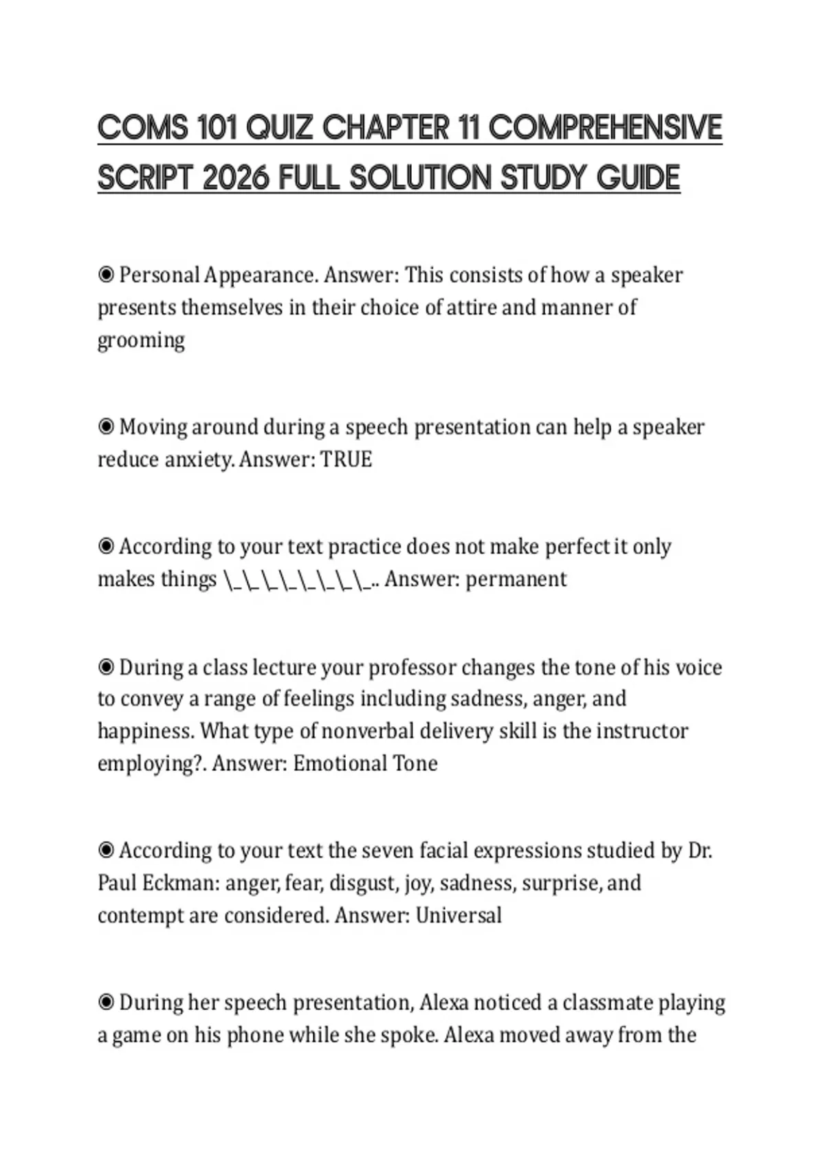 COMS 101 QUIZ CHAPTER 11 COMPREHENSIVE SCRIPT 2026 FULL SOLUTION STUDY GUIDE