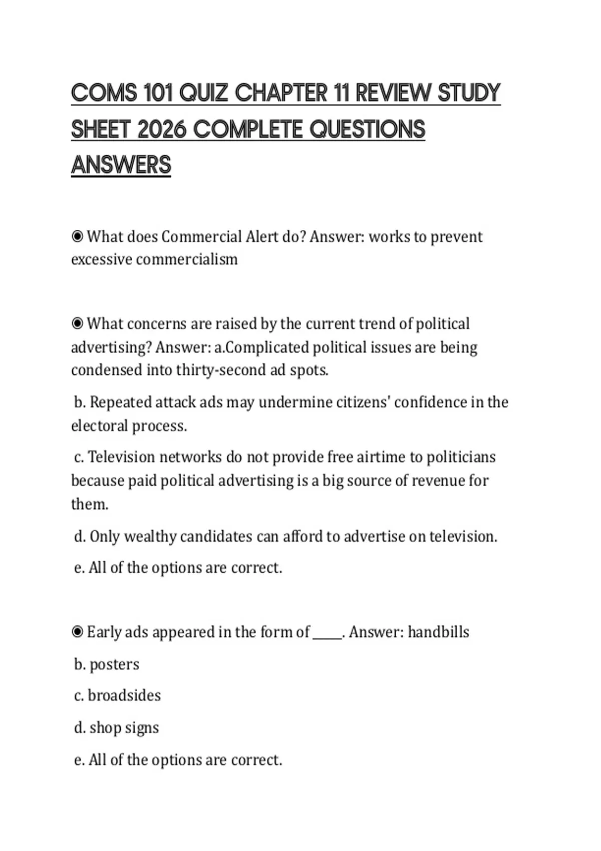 COMS 101 QUIZ CHAPTER 11 REVIEW STUDY SHEET 2026 COMPLETE QUESTIONS ANSWERS