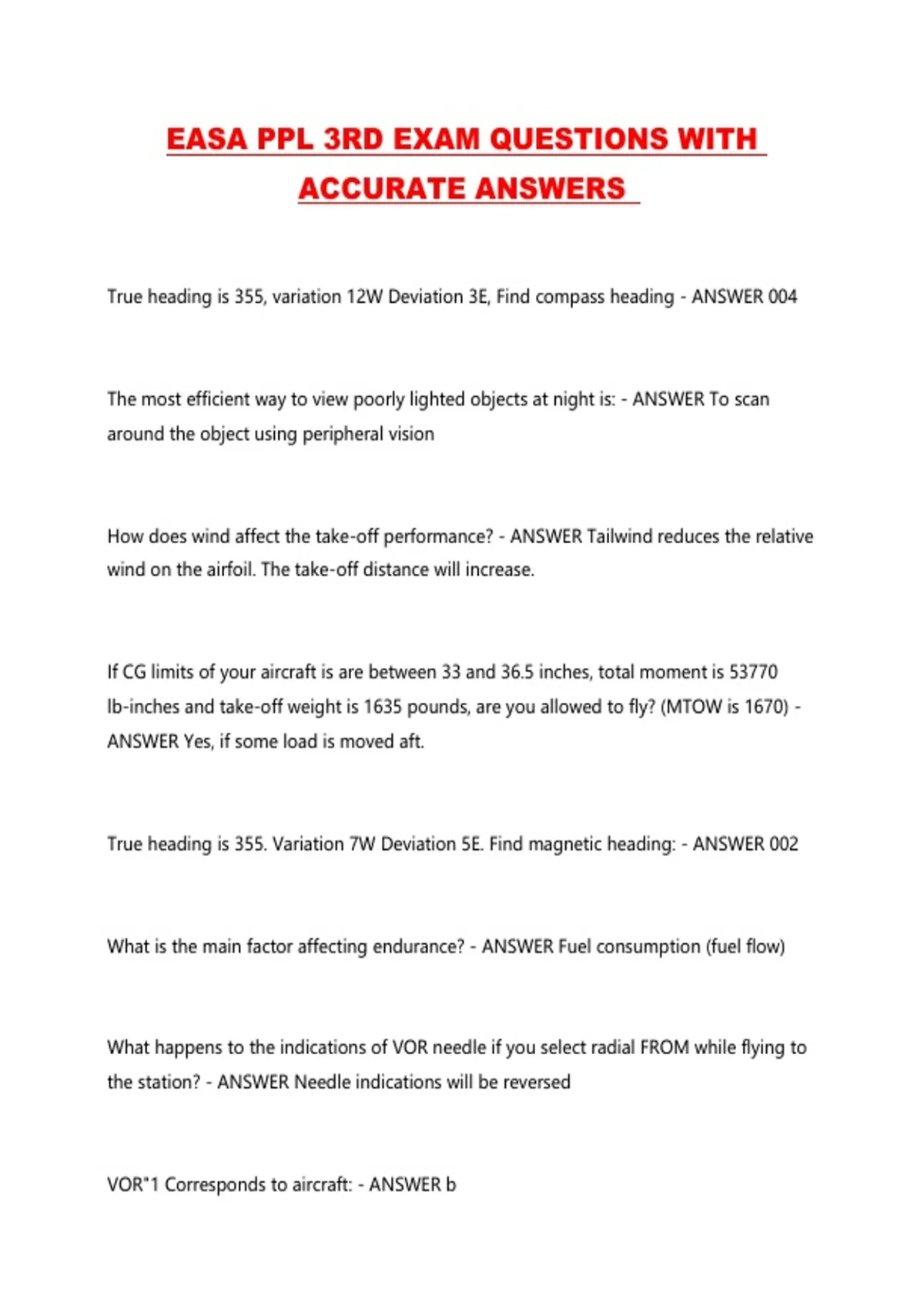 EASA PPL 3RD EXAM QUESTIONS WITH