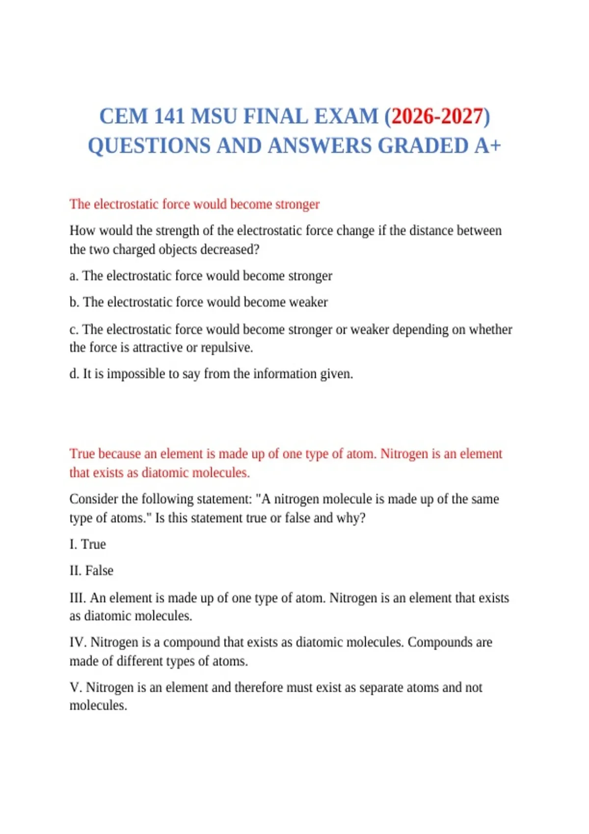 IV. Nitrogen is a compound that exists as diatomic molecules. Compounds are
