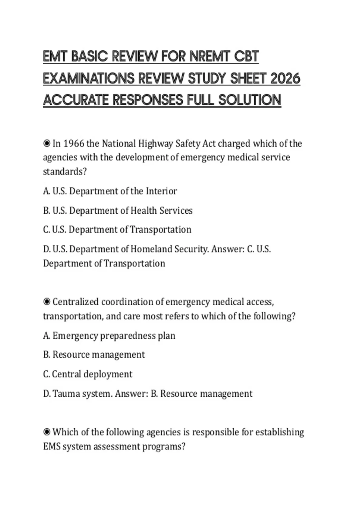 D. Emergency Medical Responder. Answer: A. Emergency Medical