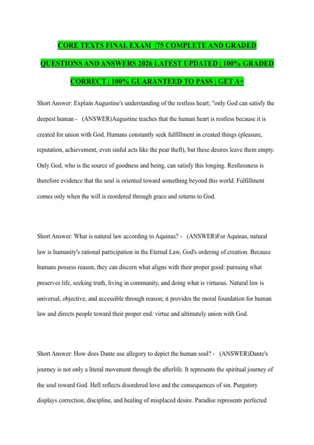 Short Answer: What is natural law according to Aquinas? - (ANSWER)For Aquinas, natural