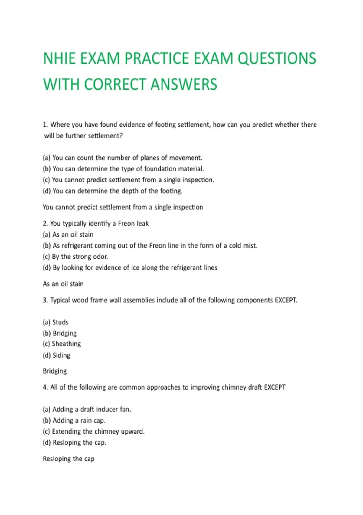 (c) |You |cannot |predict |settlement |from |a |single |inspection.