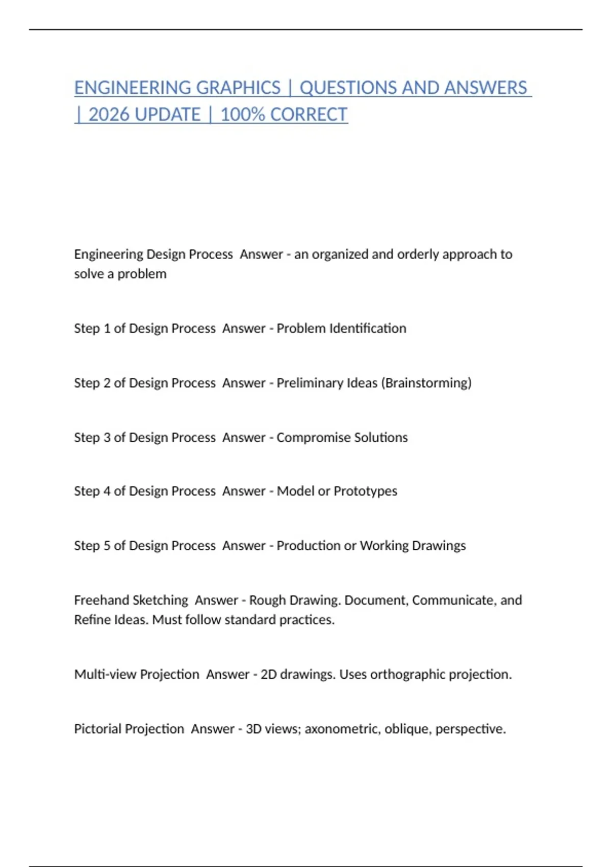 ENGINEERING GRAPHICS | QUESTIONS AND ANSWERS | 2026 UPDATE | 100% CORRECT