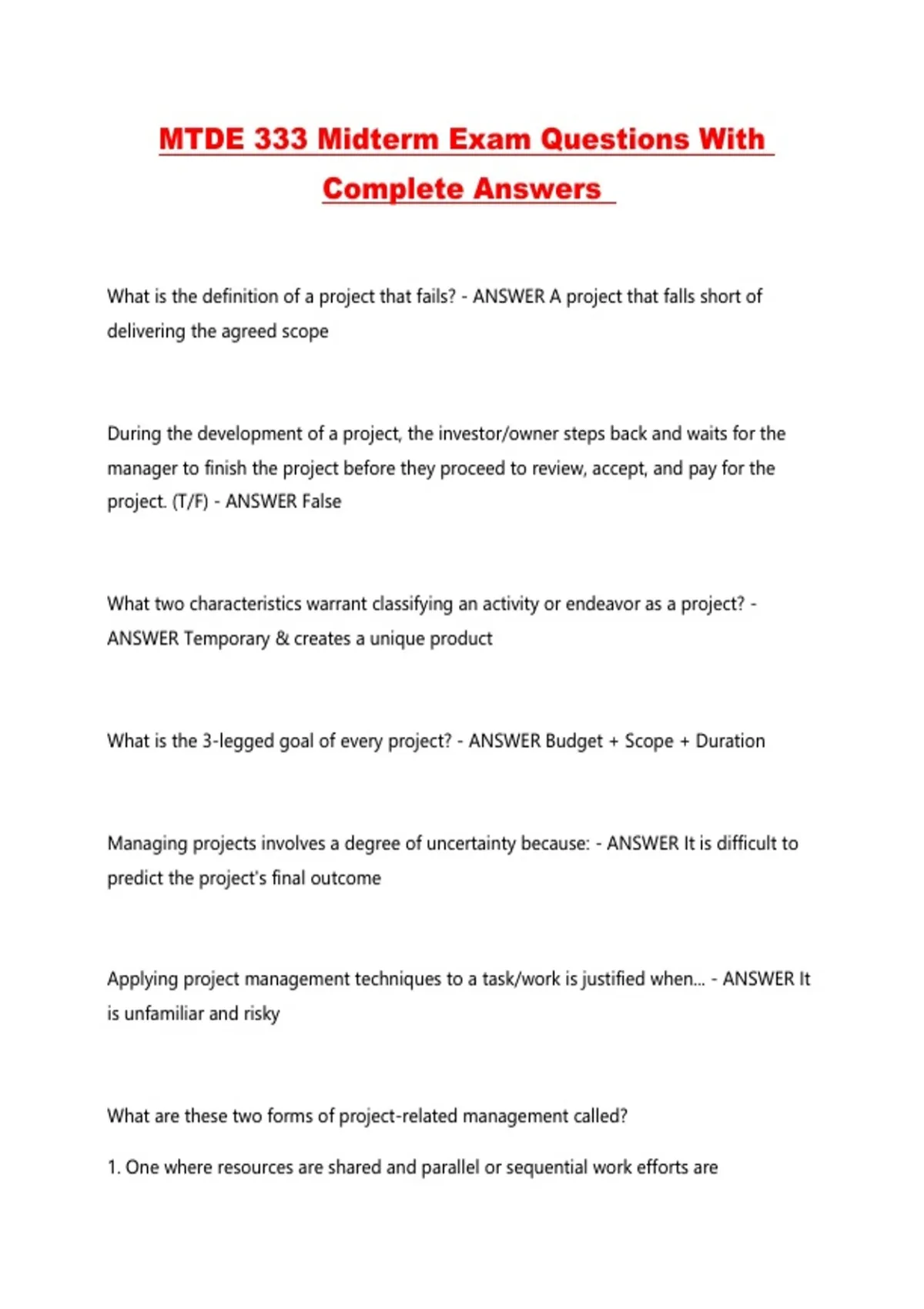 project. (T/F) - ANSWER False