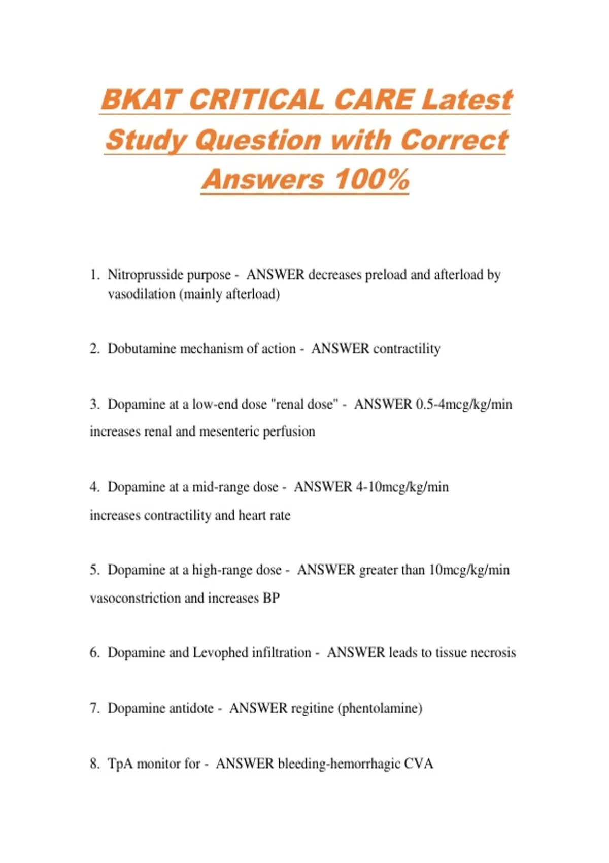 1. Nitroprusside purpose - ANSWER decreases preload and afterload by