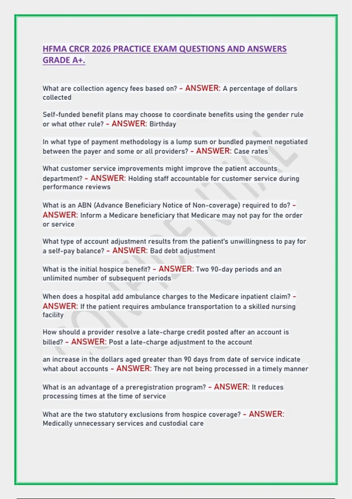 HFMA CRCR 2026 PRACTICE EXAM QUESTIONS AND ANSWERS
