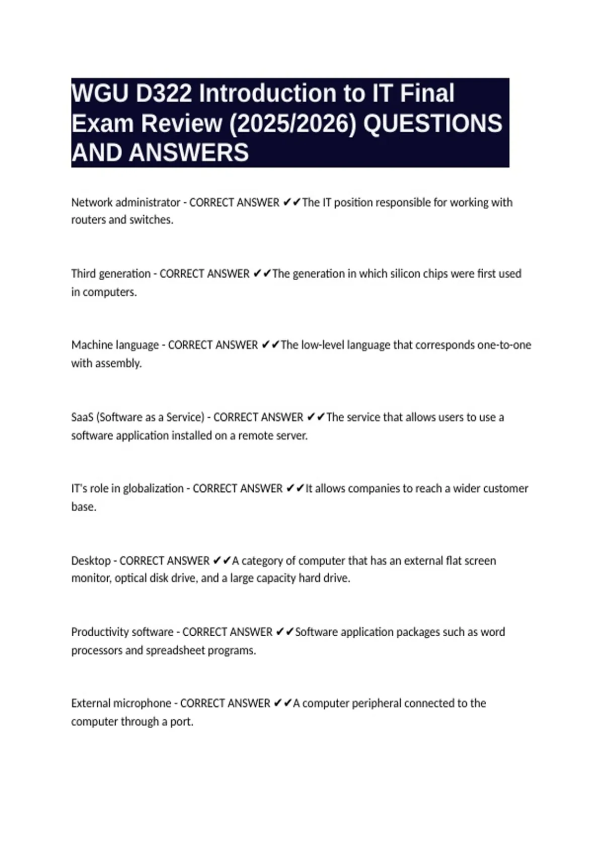 WGU D322 Introduction to IT Final Exam Review (2025/2026) QUESTIONS AND ANSWERS