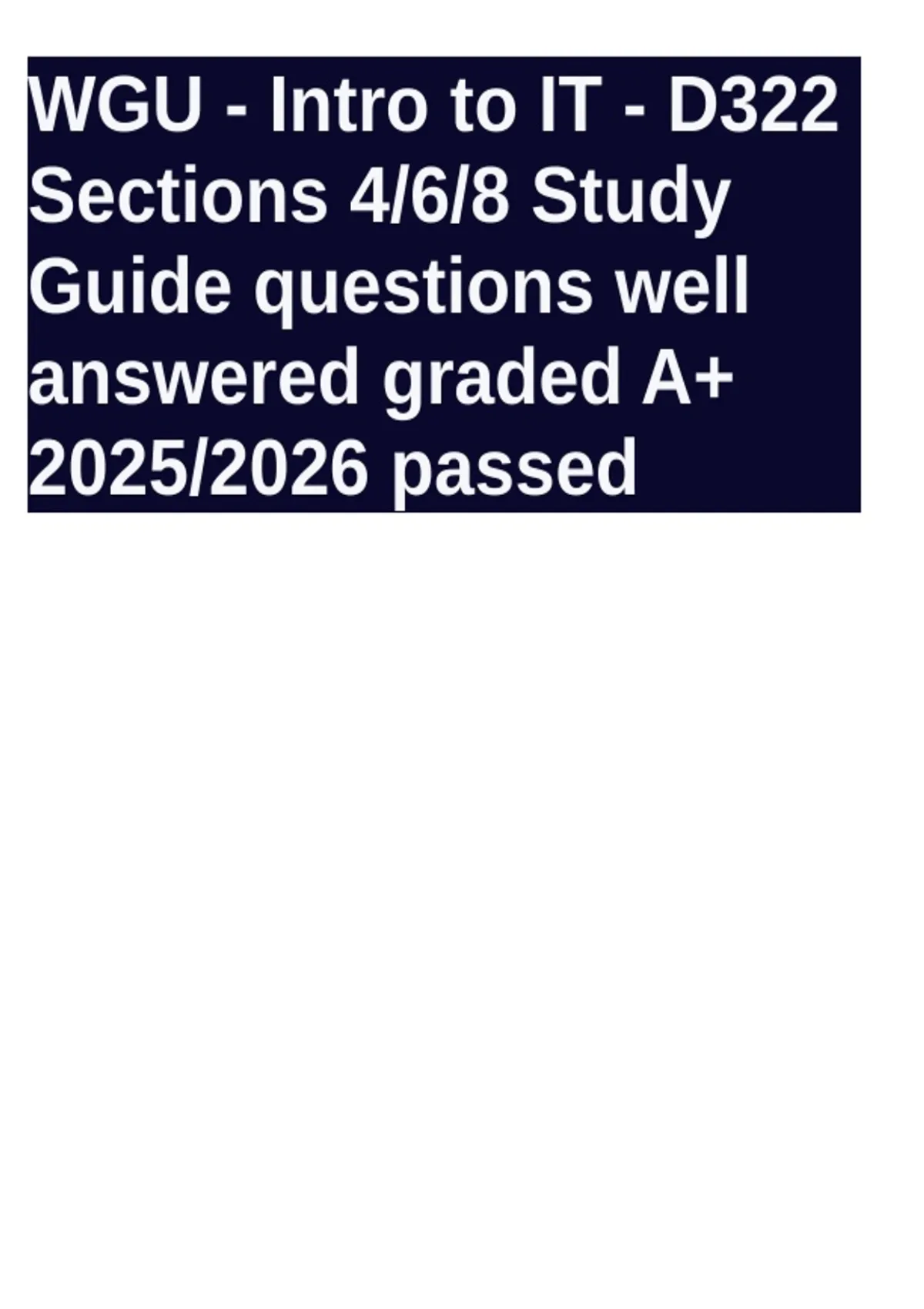 WGU - Intro to IT - D322 Sections 4/6/8 Study Guide questions well answered graded A+ 2025/2026 passed