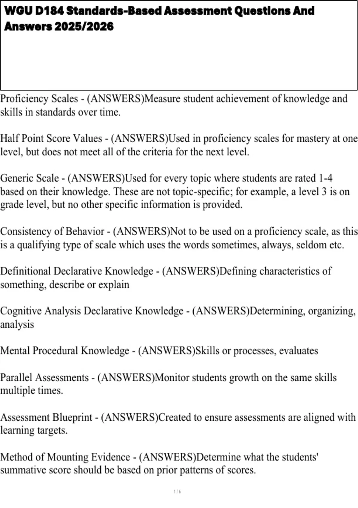 , WGU D184 Standards-Based Assessment Questions And