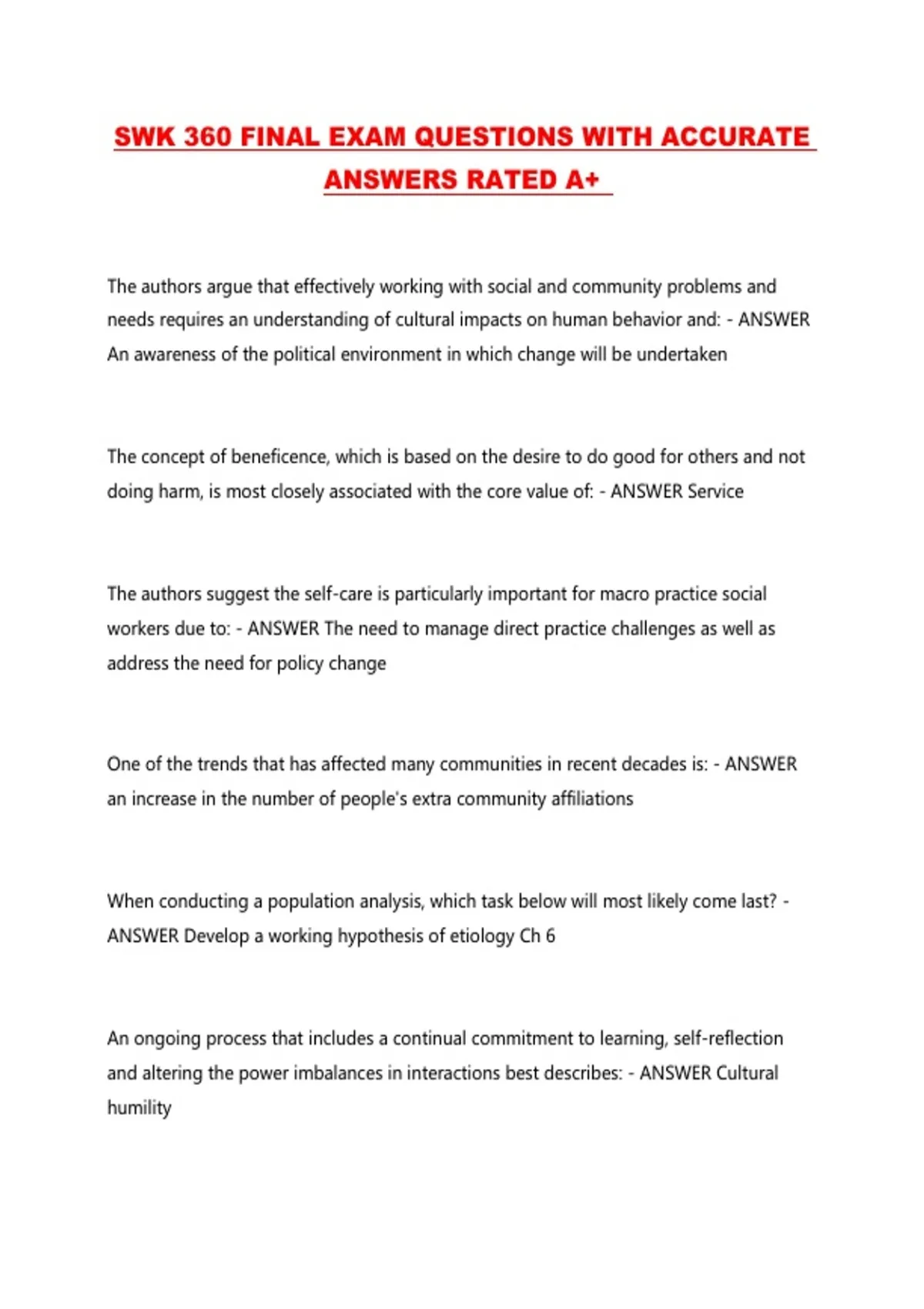 SWK 360 FINAL EXAM QUESTIONS WITH ACCURATE ANSWERS RATED A+ ...