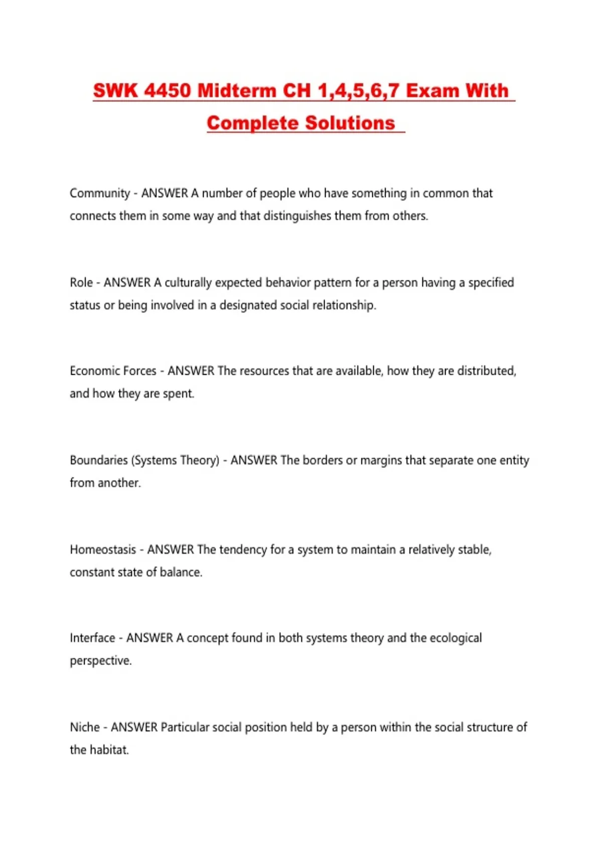 SWK 4450 Midterm CH 1,4,5,6,7 Exam With Complete Solutions ...