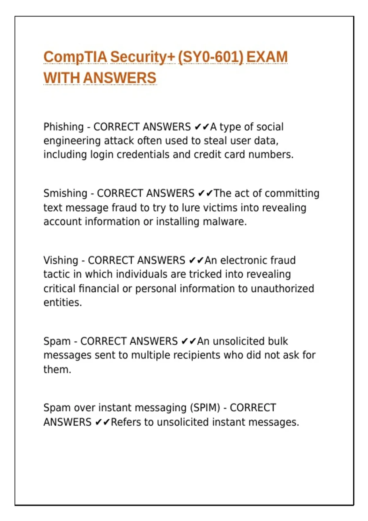 Spam - CORRECT ANSWERS ✔✔An unsolicited bulk
