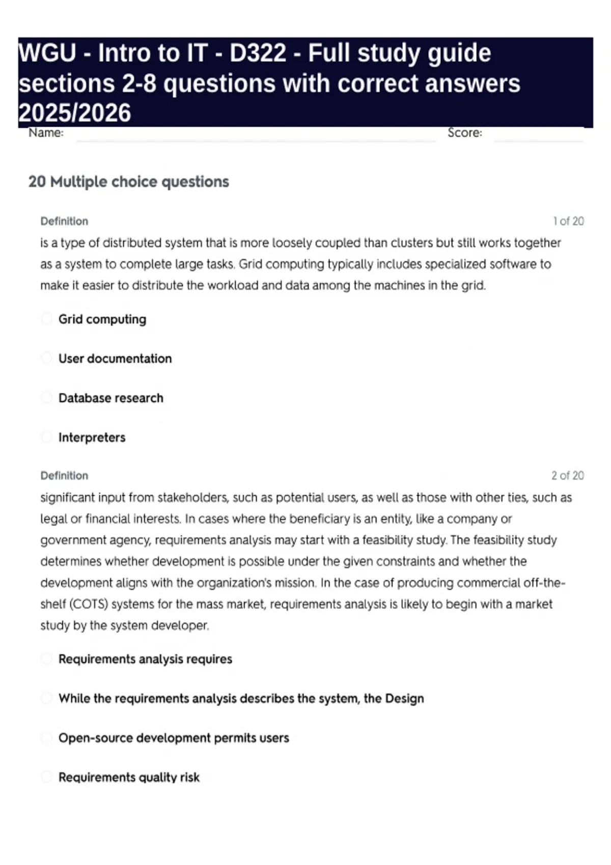 WGU - Intro to IT - D322 - Full study guide sections 2-8 questions with correct answers 2025/2026