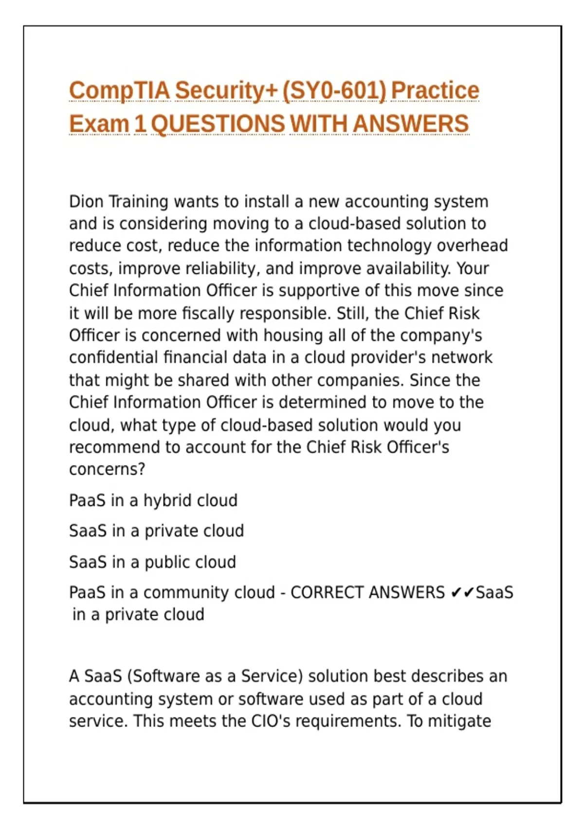 PaaS in a community cloud - CORRECT ANSWERS ✔✔SaaS