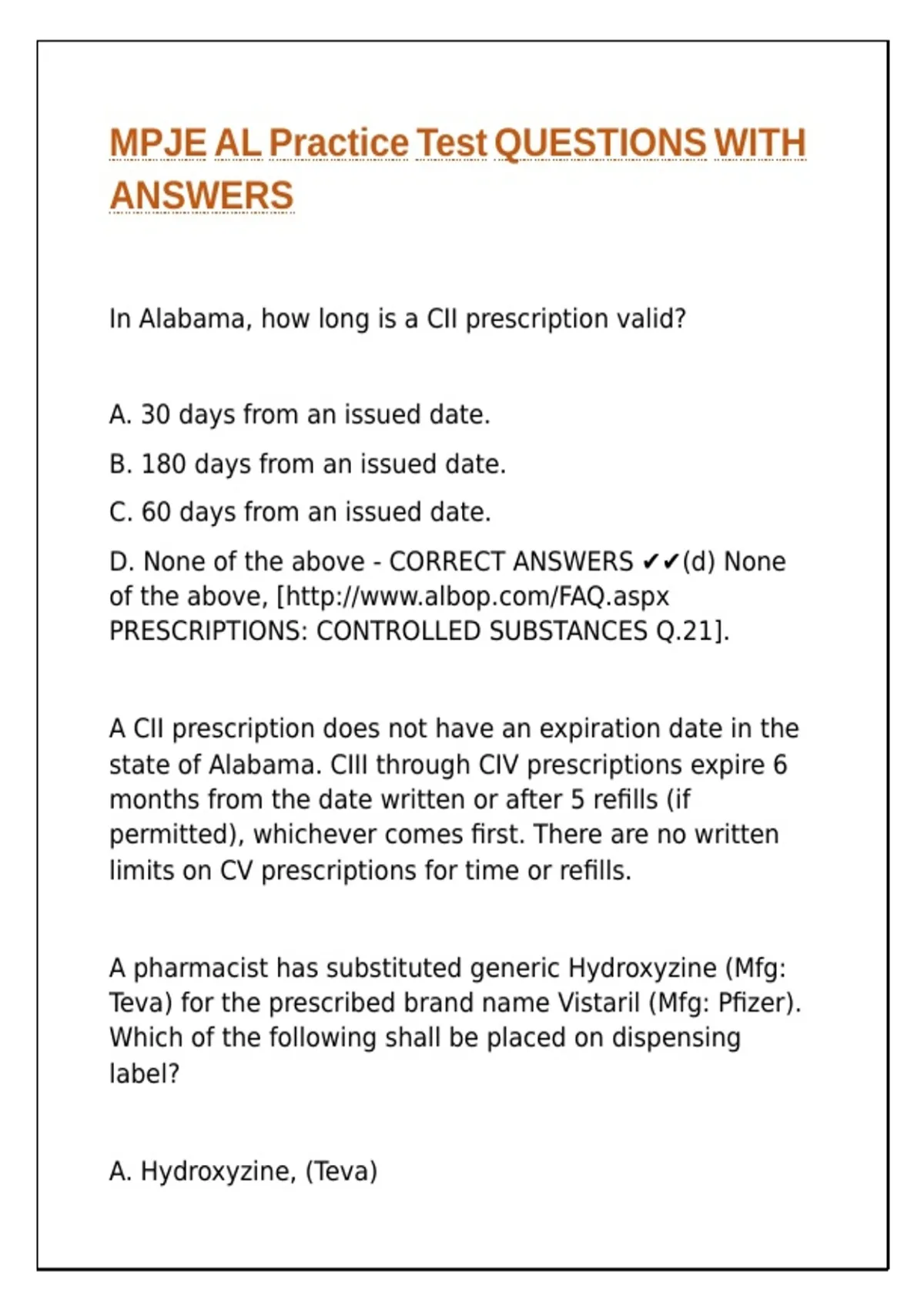 MPJE AL Practice Test QUESTIONS WITH |\ |\ |\ |\ |\ |\