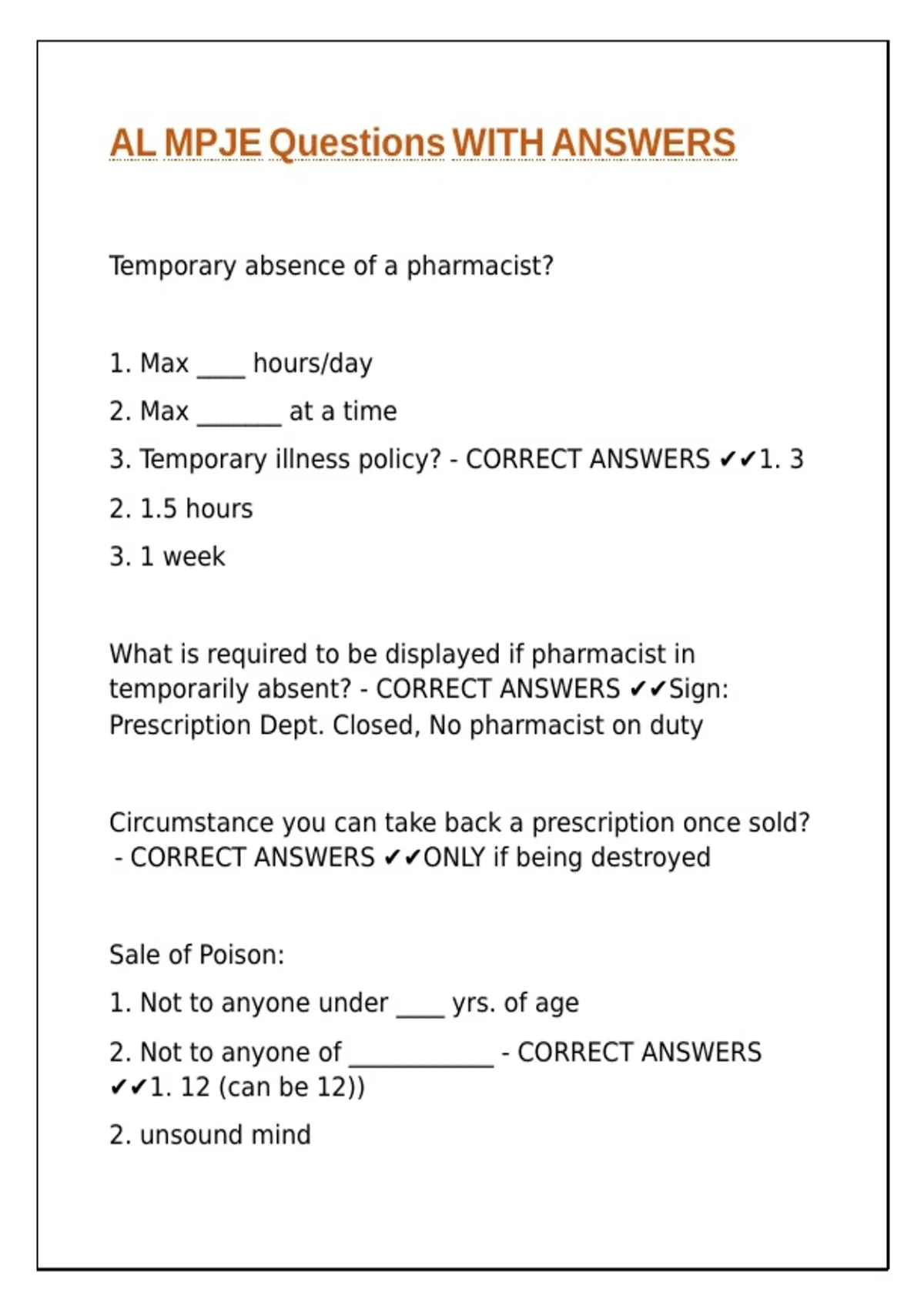 pharmacy)? - CORRECT ANSWERS ✔✔must have a |\ |\ |\ |\ |\ |\ |\