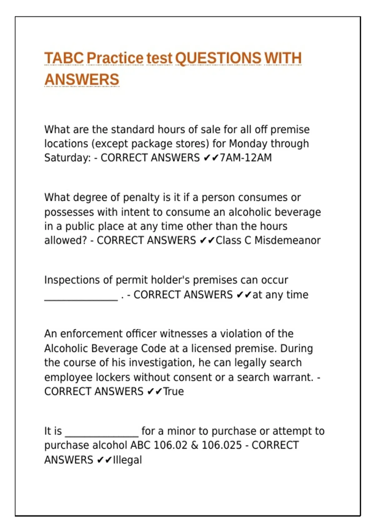 charge. ABC 101.04 - CORRECT ANSWERS ✔✔Class A