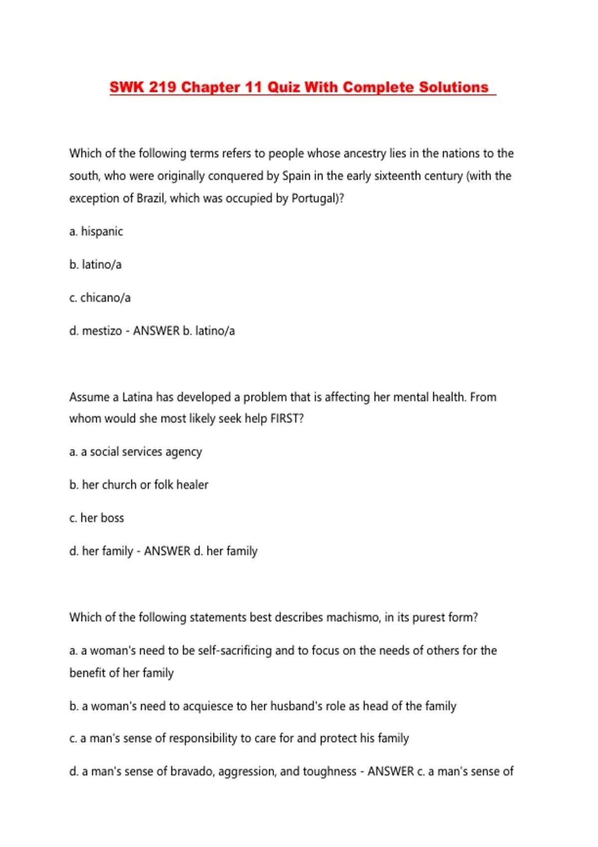 SWK 219 Chapter 11 Quiz With Complete Solutions