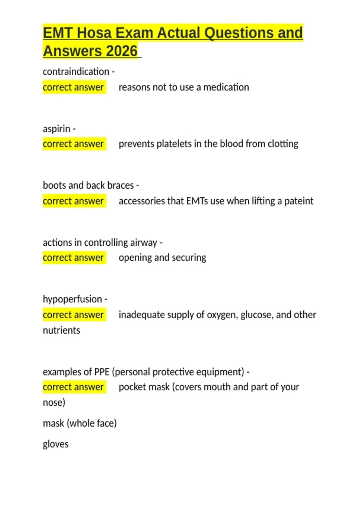 ,EMT Hosa Exam Actual Questions and