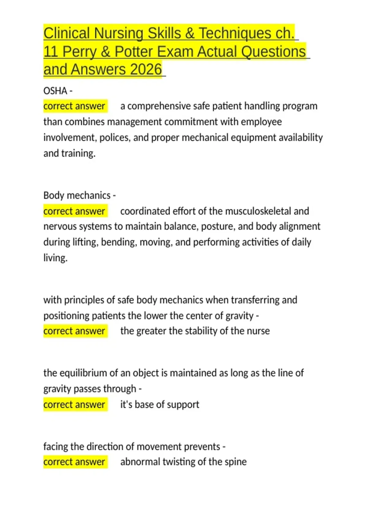 Clinical Nursing Skills & Techniques ch. 11 Perry & Potter Exam Actual Questions and Answers 2026.docx