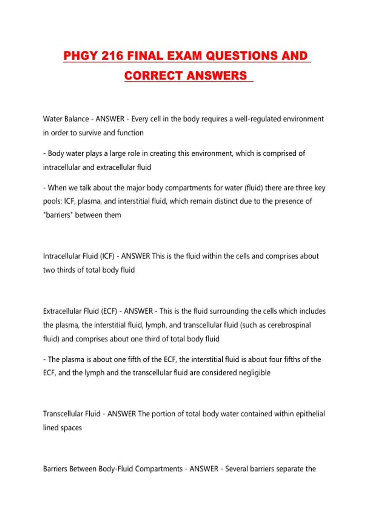 PHGY 216 FINAL EXAM QUESTIONS AND CORRECT ANSWERS ...