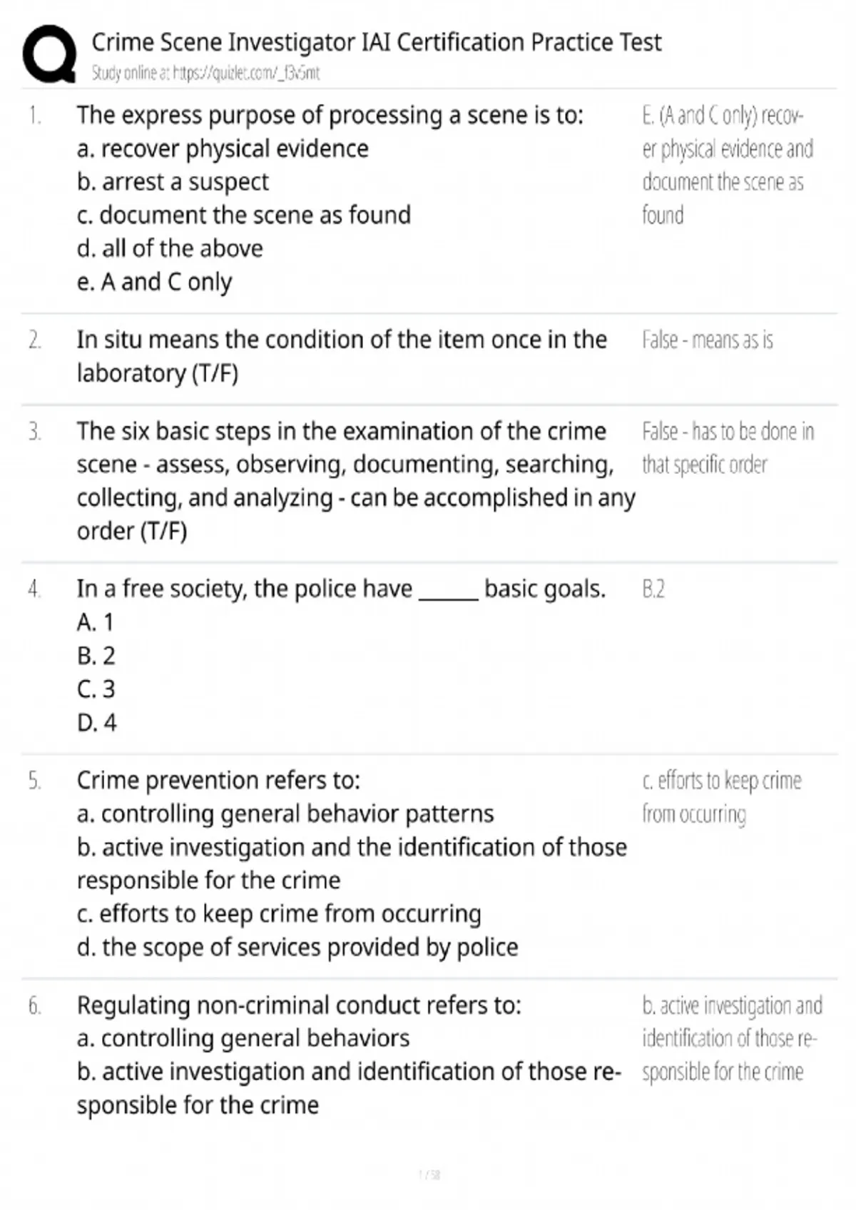 Crime Scene Investigator IAI Certification / CSI Practice Test & Exam Prep / Study Guide & Test Bank / Score 100% / 2025 Update