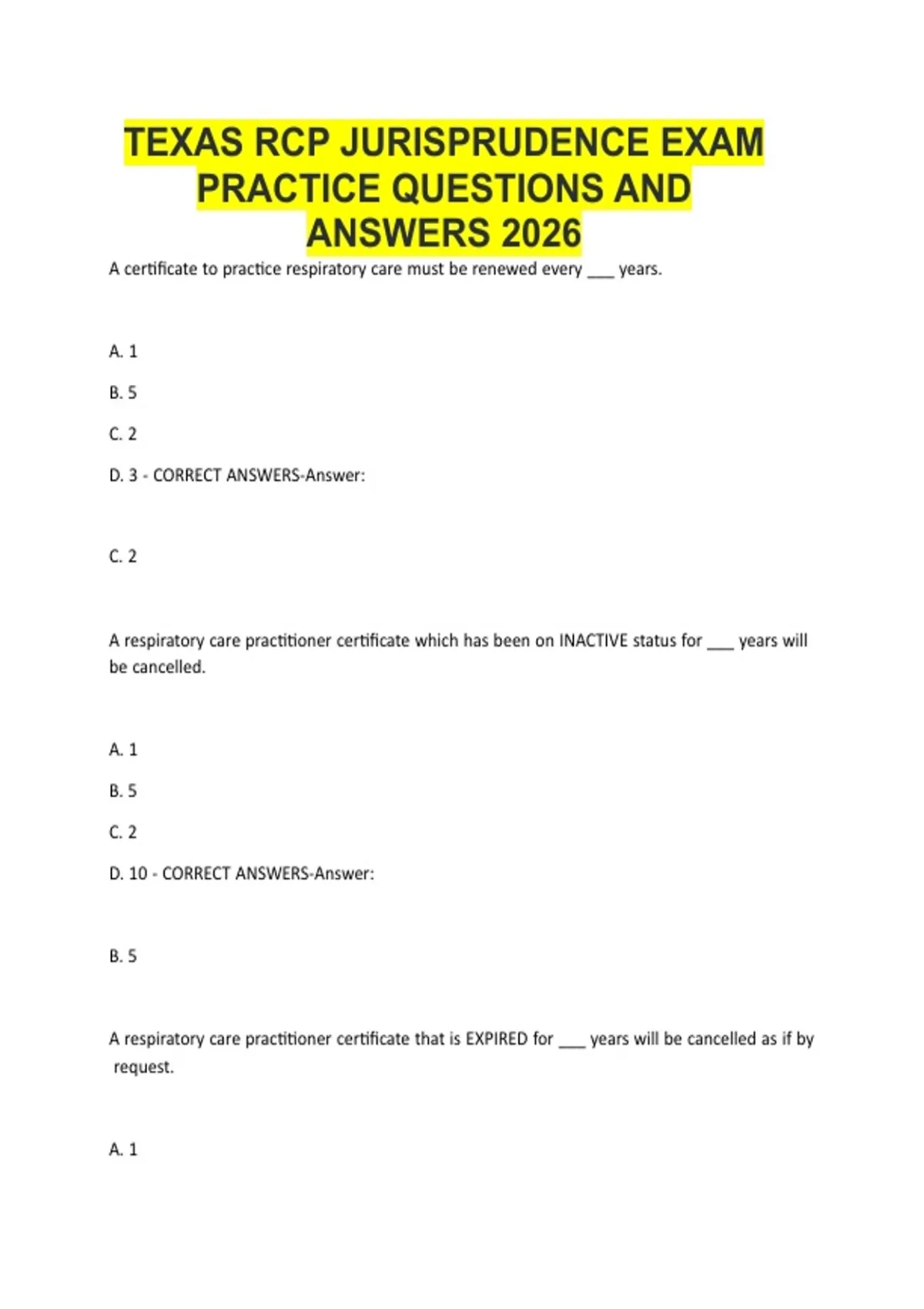 TEXAS RCP JURISPRUDENCE EXAM PRACTICE QUESTIONS AND ANSWERS 2026