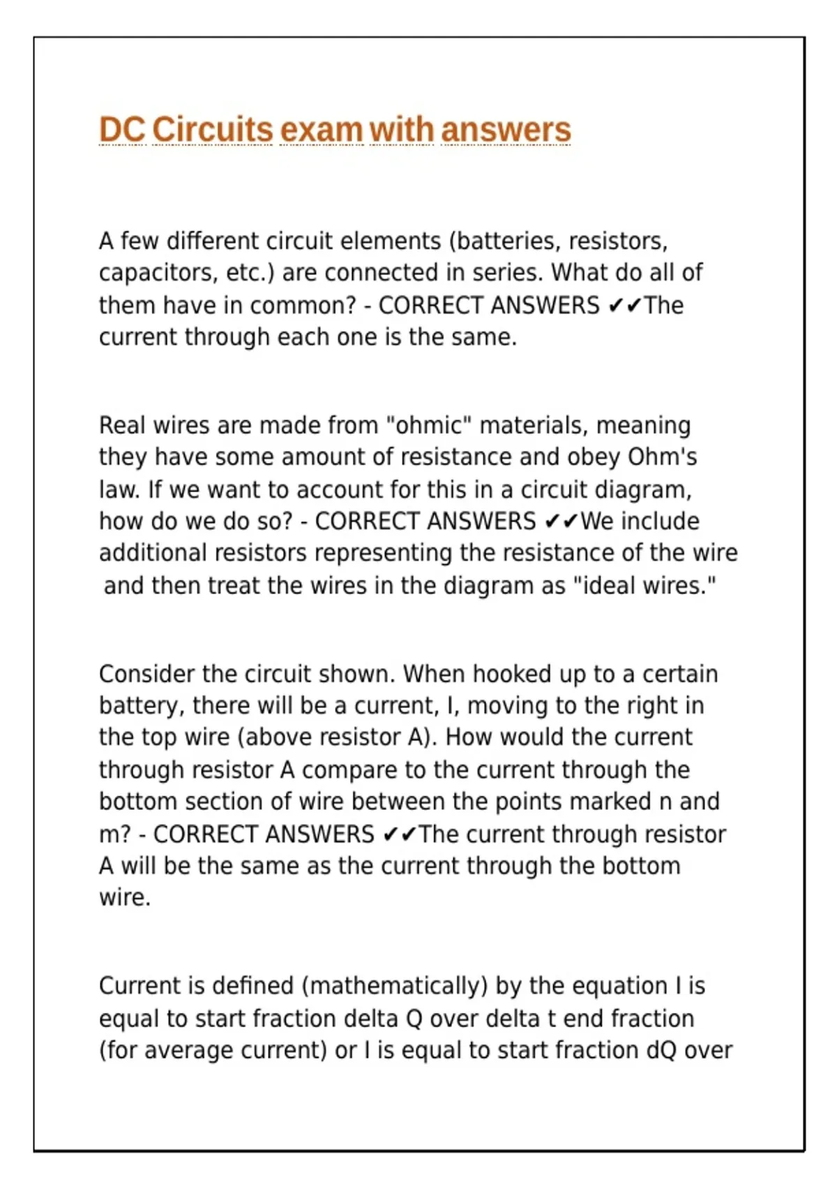 CORRECT ANSWERS ✔✔Current is the rate at which |\ |\ |\ |\ |\ |\ |\ |\