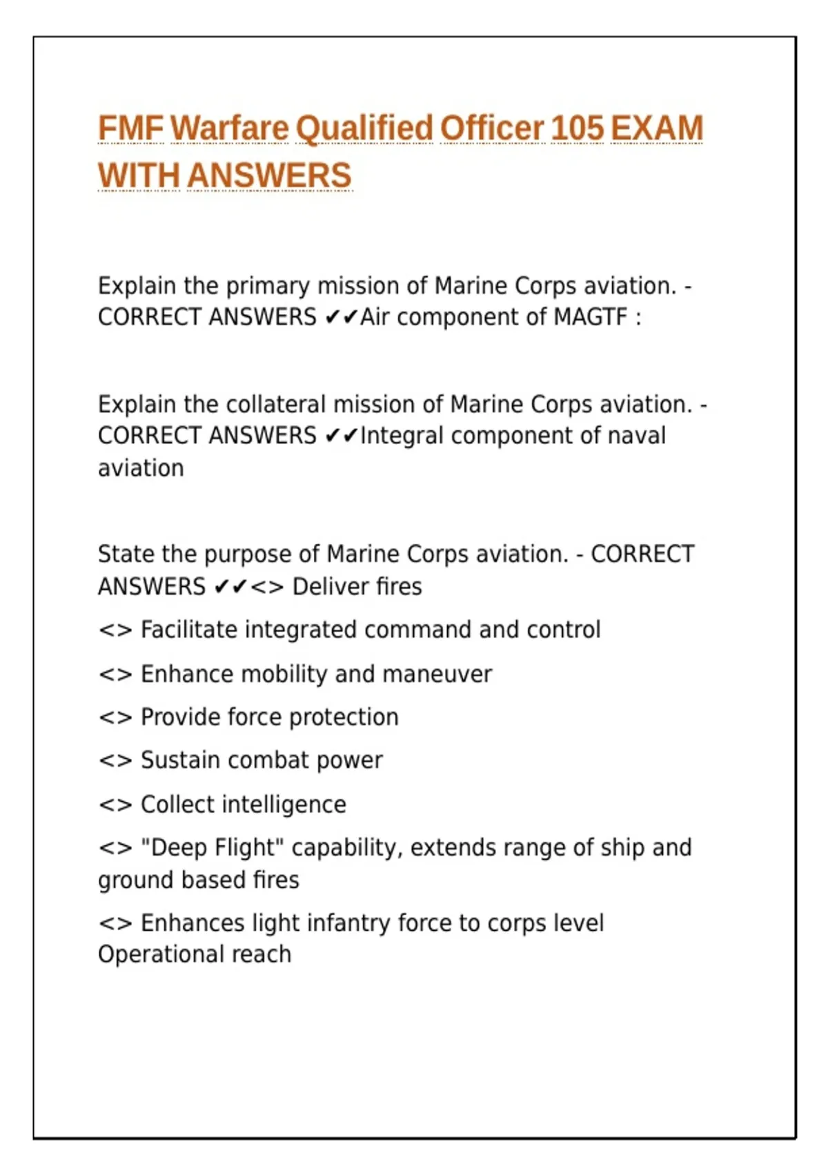 FMF Warfare Qualified Officer 105 EXAM WITH ANSWERS.