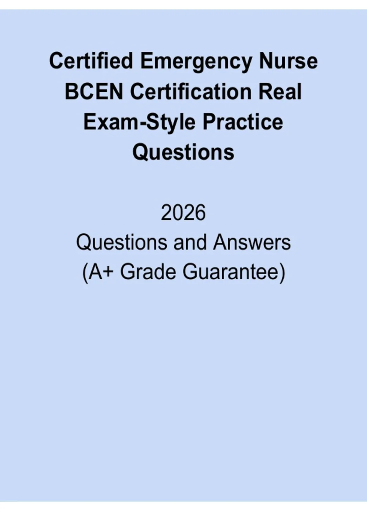Prepare effectively for the Certified Emergency Nurse (CEN) BCEN Certification Exam 2026 with this practice questions PDF featuring real exam-style questions aligned with current BCEN standards. Designed to strengthen emergency nursing knowledge and clinical decision-making, this resource helps you practice applying key concepts under exam-like conditions while identifying areas for improvement. Ideal for both first-time candidates and recertification nurses, this guide supports focused preparation and confident exam performance.