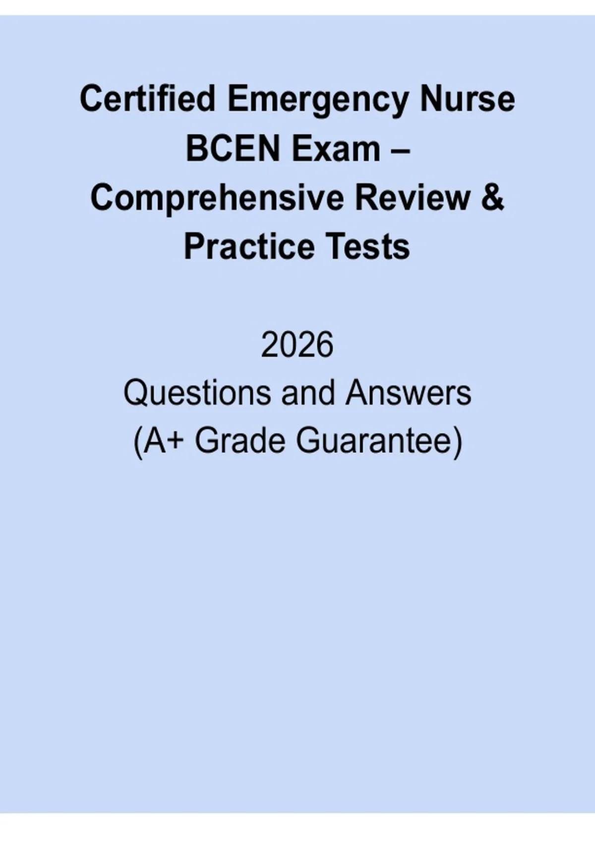 Prepare thoroughly for the Certified Emergency Nurse (CEN) BCEN Exam 2026 with this comprehensive review and practice tests PDF designed to support complete exam readiness. This resource combines clear emergency nursing content review with realistic practice tests to help reinforce knowledge, improve test-taking skills, and build confidence. Ideal for both first-time candidates and emergency nurses seeking recertification, this guide provides structured, exam-focused preparation to maximize success on certification exam day.