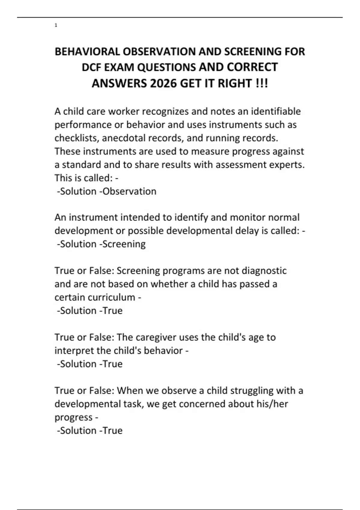 BEHAVIORAL OBSERVATION AND SCREENING FOR DCF EXAM QUESTIONS AND CORRECT ANSWERS 2026 GET IT RIGHT !!!