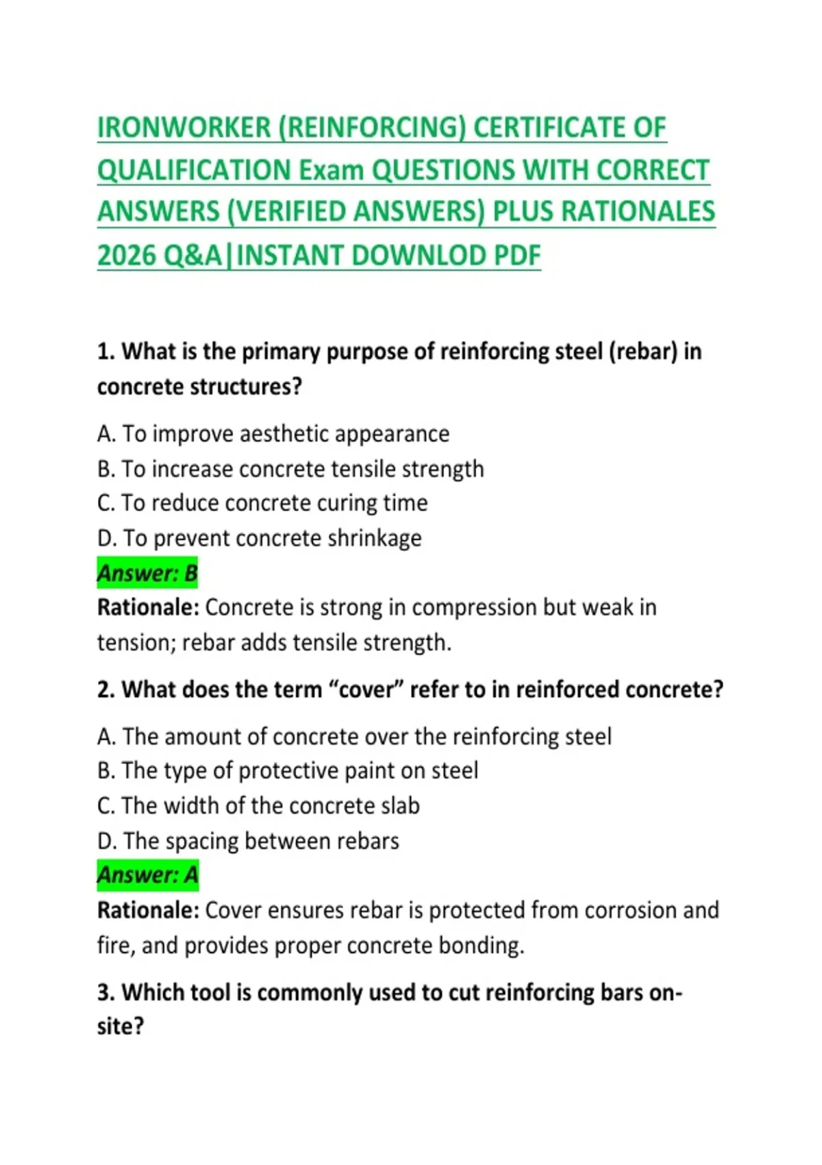 Ironworker Certification Exam Questions & Answers
