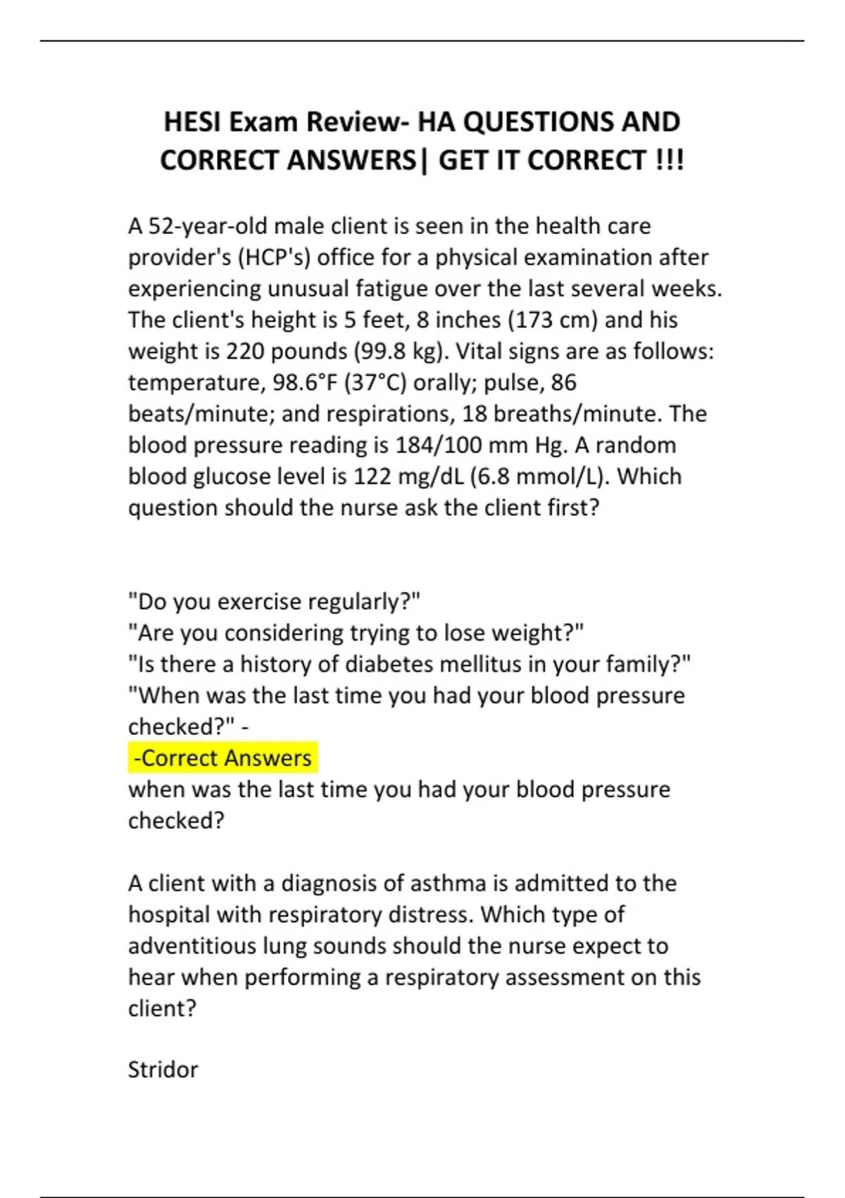 HESI Exam Review- HA QUESTIONS AND