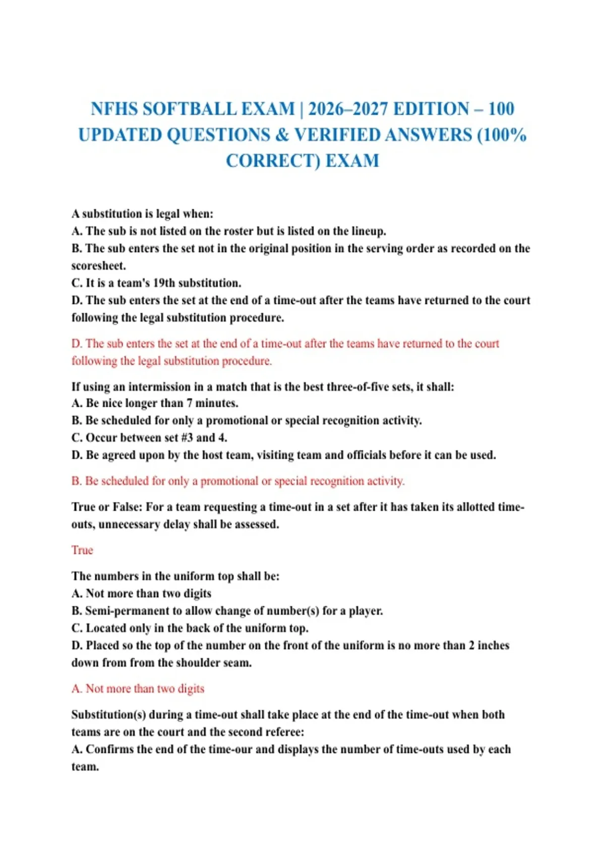 NFHS SOFTBALL EXAM | 2026–2027 EDITION – 100 UPDATED QUESTIONS & VERIFIED ANSWERS (100% CORRECT) EXAM